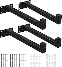 Justech 4pcs 10' Support d'Étagère Décoratif Robuste Support à Tablette Flottante en Fer Étagère Soutient Fer Mural Étagère Support avec Vis pour Bricolage Étagère Murale-Noir