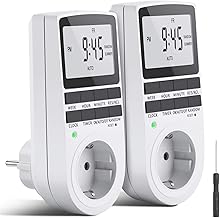 Mopoin Prise Programmable Digitale, Minuterie Numérique Prise Programmable Digitale, Minuterie Numérique Hebdomadaire avec Ecran LCD, Minuterie Prise Electrique 12H/24H/7Jours, 2 Packs