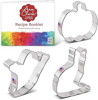 Ann Clark Cookie Cutters Ensemble de 3 emporte-pièces Halloween avec livret de recettes, chauve-souris, citrouille et fantôme - Acier de fabrication américaine