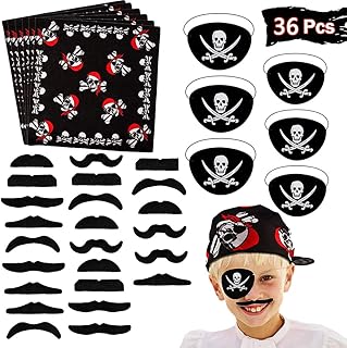BESTZY 36pcs Pirate Accessoire pour Anniversaire et Pirate Party Pirate Eye Patch Pirate Faux Moustache Pirate Foulard pour Enfants Pirate Anniversaire Fête Accessoire