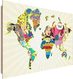 Feeby Frames, Tableau mural, Tableau Déco, Tableau imprimé, Tableau Deco Panel, 60x90cm, CARTE DU MONDE, POP ART, MULTICOLORE