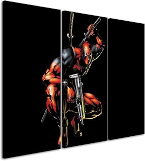 Lot de 3 Impression sur toile Motif Deadpool Cartoon _ _ _ _ _ _ _ _ _ _ _ _ _ 3 x 90 x 40 cm, Total Taille 120 x 90 cm _ Ausführung Finition superbe Impression sur toile comme un véritable Tableau mural sur toile sur châssis