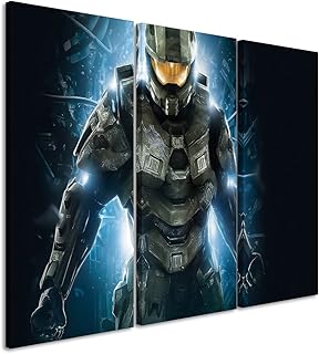 Lot de 3 Impression sur toile Motif Halo 4 Master Chief II _ _ _ _ _ _ _ _ _ _ _ _ _ _ _ _ _ _ _ _ _ _ _ _ _ 3 x 90 x 40 cm, Total Taille 120 x 90 cm _ Ausführung Finition superbe Impression sur toile comme un véritable Tableau mural sur toile sur châssis