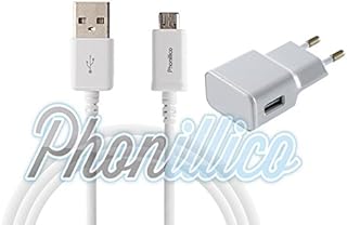 Phonillico® Cable USB + Chargeur Secteur Blanc pour Samsung Galaxy Grand Prime - Cable Chargeur Universel Port Micro USB Data Chargeur Synchronisation Transfert Donnees Mesure 1 Metre Chargeur Secteur Prise Murale