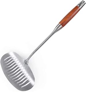 Newness Spatule Cuisine 38.5 cm, Spatule à Angle 304 Acier Inoxydable flexible pour poisson, Spatule Poisson Flexible Turner avec Manche en Bois