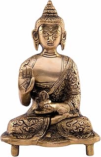 Kartique Statue en Laiton Idole Murti Bouddha en Position bénédiction, Couleur Marron, pour la Maison, Le Salon, Le Bureau, décoration de Table, Cadeau Religieux, pièce de 14 cm