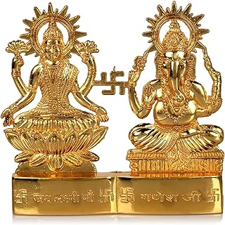 OMG-Deal Statue de Ganesh Laxmi en plaqué or de 10,2 cm de haut - Cadeau spirituel Idole Murti pour Pooja/décoration de maison/cadeau Deewali/Deepawali Puja