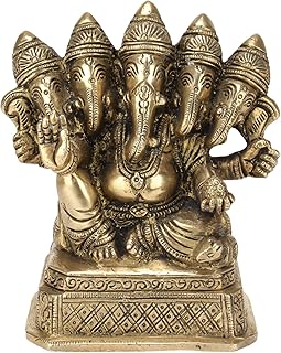 Kartique Laiton Seigneur Panchmukhi Ganesha Hindou Bhagwan Idole pour Maison Entrée Ganpati Murti Statue Diwali Bonne Chance Vastu Success Style Antique Cadeau