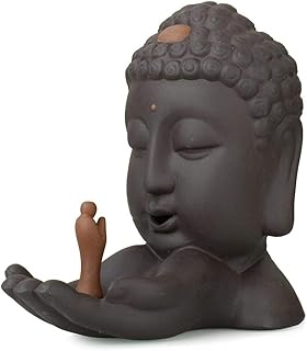 MoYouno Porte-encens à refoulement Bouddha, brûleur d'encens en céramique Fait à la Main avec Abat-Jour, Porte-cônes de refoulement pour la décoration de la Maison, Cadeau mère, Cadeaux Nana