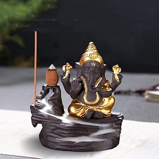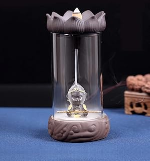Fashion&Man Brûleur d'encens à Contre-Courant en Céramique Brûleur d'encens Cascade Brûle-encens à Refoulement Porte Encens Bouddha/Lotus pour Spa, Yoga, Méditation, avec 20 Cônes d'encens, Style 1