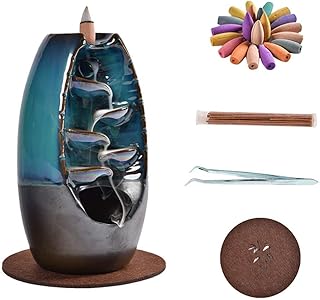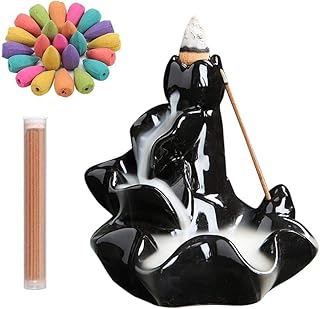 Hydron Brûleur d'encens à refoulement Brûleur d'encens Cascade Décoration de la Maison avec 120 cônes d'encens, 20 Plateaux d'encens Ronds, 30 bâtons d'encens, Base en céramique, Tapis antidérapant