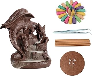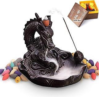 XUDREZ Brûle-encens à refoulement en forme de dragon - En céramique - Décoration d'intérieur - Avec 20 cônes d'encens à refoulement - Boîte cadeau