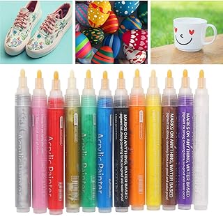 EKKONG Marqueur Acrylique, 0.7 mm Marqueur Peinture Acrylique 12 Couleurs Stylo Acrylique pour Peinture Céramique, Bois, Porcelaine, Tissu, Verre Dessin, Metal, Vetement, Stylo Textile, Pierres
