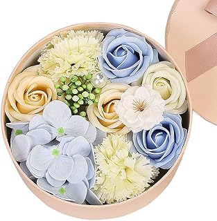 Gobesty Coffret Cadeau Rose Savon, Coffret Cadeau Fleur de Savon Rose, Boîte à Fleurs Roses avec Carte Cadeau pour la Saint-Valentin, décoration de la Maison, Cadeaux danniversaire créatifs (Bleu)