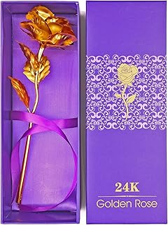 DeeCozy Cadeau danniversaire pour Femme, Fleur de Rose en Feuille dor 24 carats, Fleur de Rose Artificielle avec boîte-Cadeau, Roses pour la Saint-Valentin, Thanksgiving, Noël, Anniversaire, Golden
