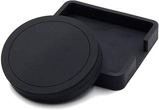 RenHe sous Verre Silicone Set Quatre Dessous de Verre Ronde et Un Support de Dessous de Verre pour Verre de Pinte de Bière Tasses à Café Tasses à Thé Bouteilles Fête Maison Bureau et Plus Noir