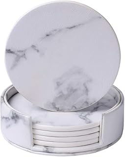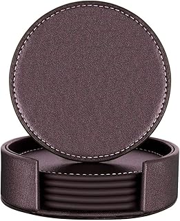 Dessous de verre en cuir, Set de 6 Dessous de Verre - Ronde, pour Verre de Pinte de bière, Tasses à Café, Tasses à Thé et Bouteilles - Fêtes, Maison, Bureau et Plus