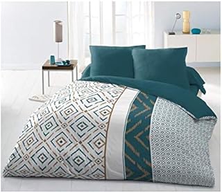 HOME LINGE PASSION Parure de Couette Microfibre Ethno 220x240cm et 2 taies d'oreillers 63x63cm Bleu Canard