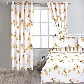 Nimsay Home Paire de rideaux à œillets 100 % coton entièrement doublés Motif coquelicots Blanc/ocre/gris 168 x 183 cm
