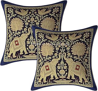 Stylo Culture Ethnique Décoratif Brocart Housses De Coussin Elephant 30x30 cm Bleu Ethniques Petit Jacquard 12 x 12 Pouces Décor Lounge Lot De 2 Paon Carré Taies d'oreiller Elephant